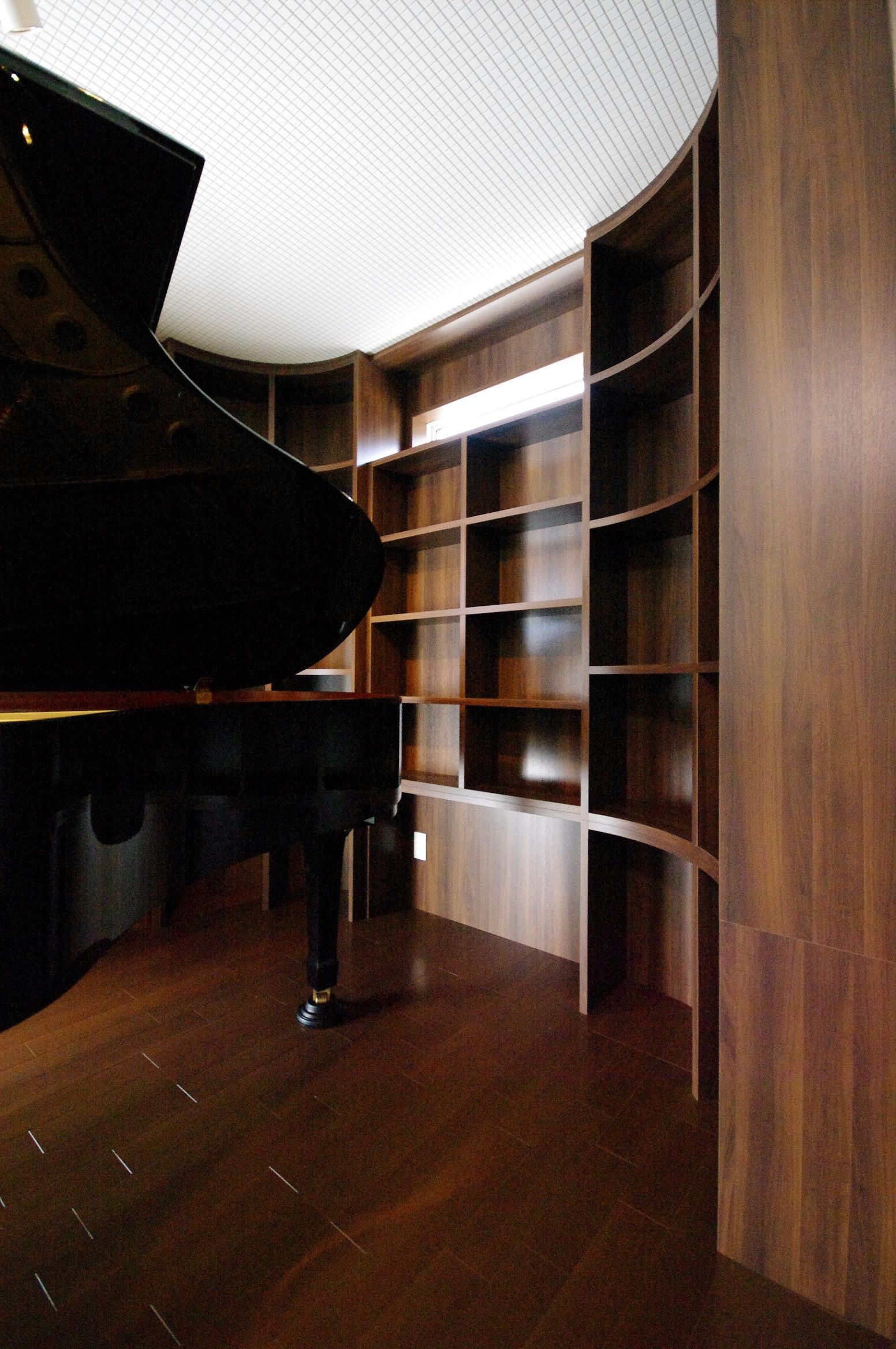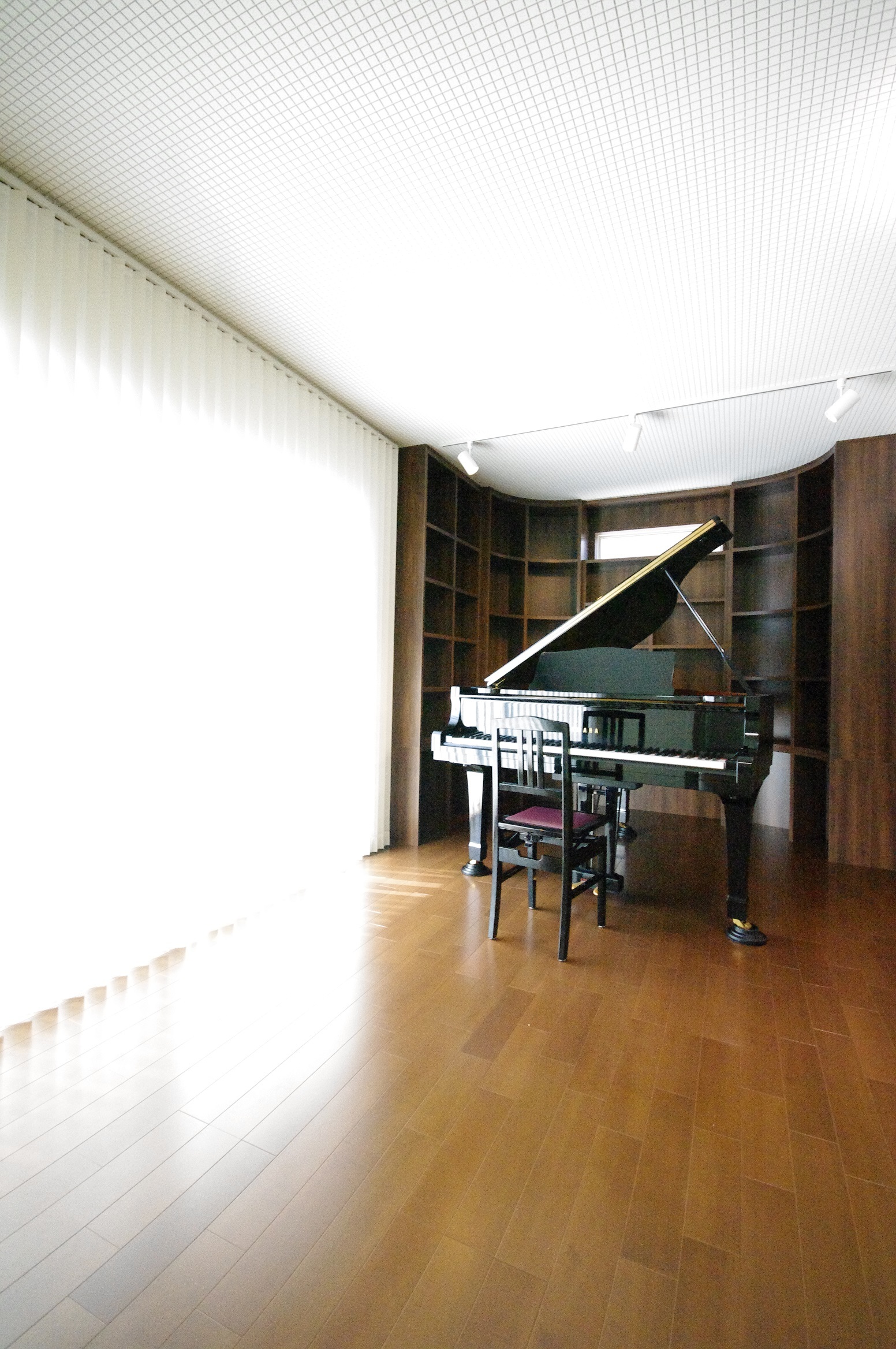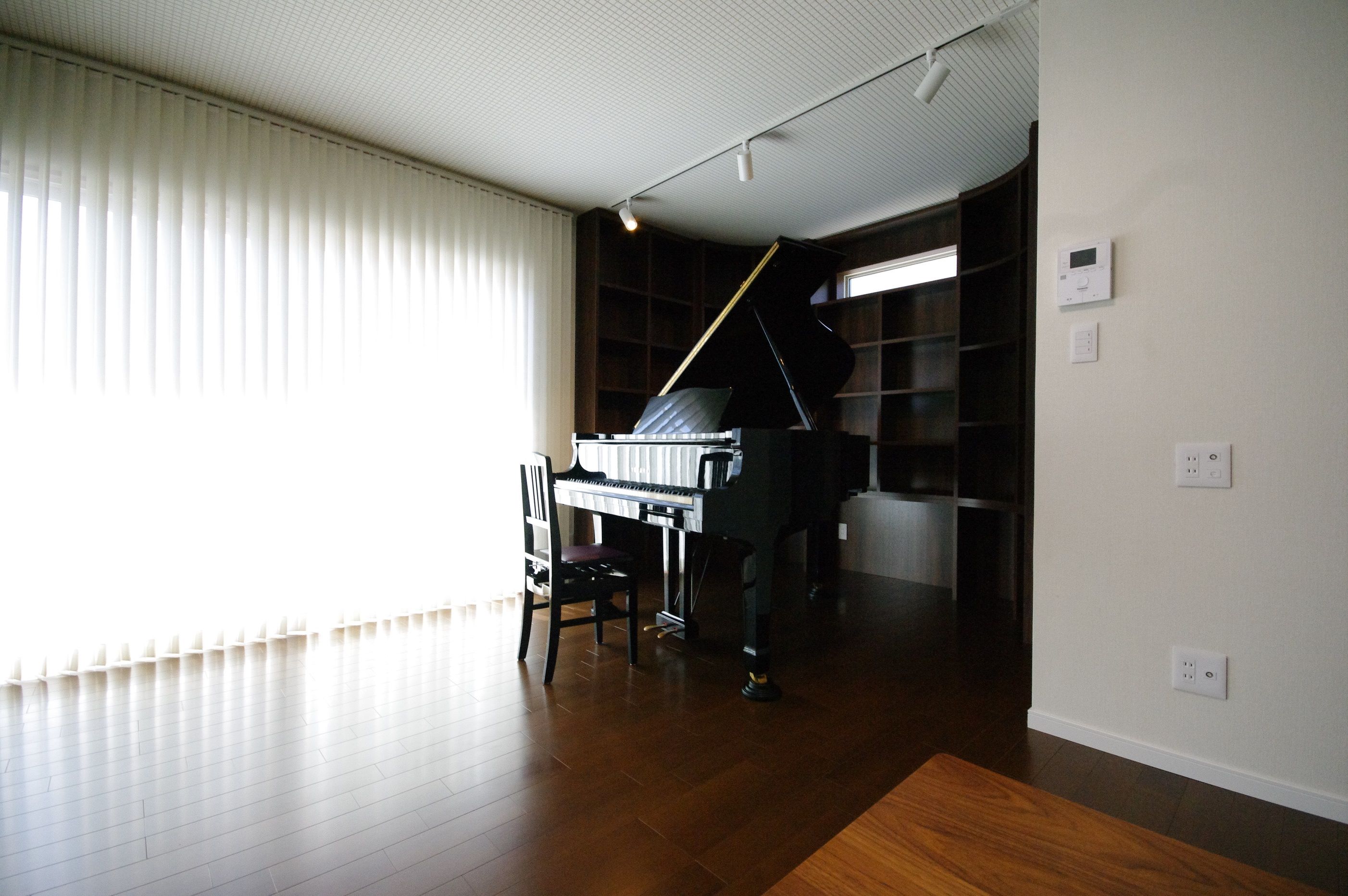ピアノを囲む絵本棚