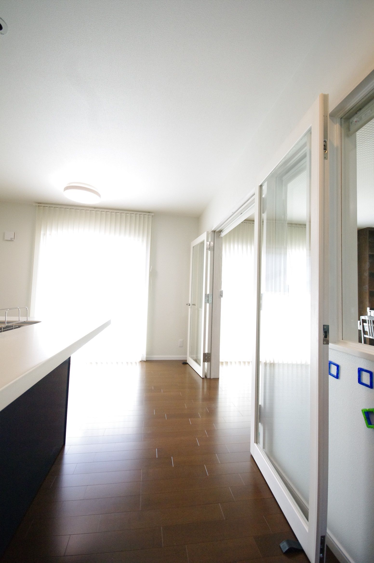 バーチカルブラインドから優しい光。
